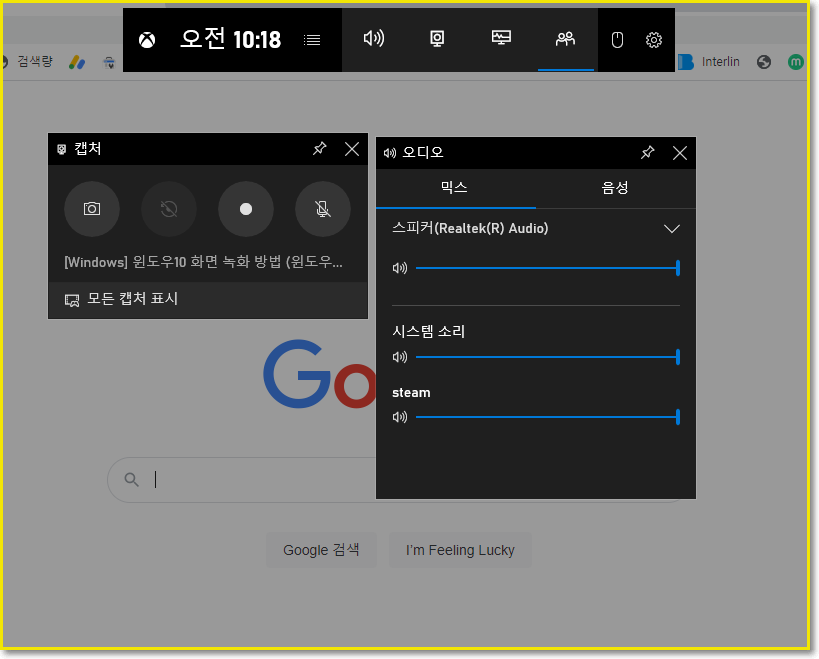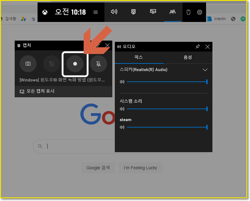 ์๋์ฐ ํค + G (๊ฒ์) ์ ๋๋ฅด๊ณ ๋ นํํ๋ฉด ๋์ด๋ค.