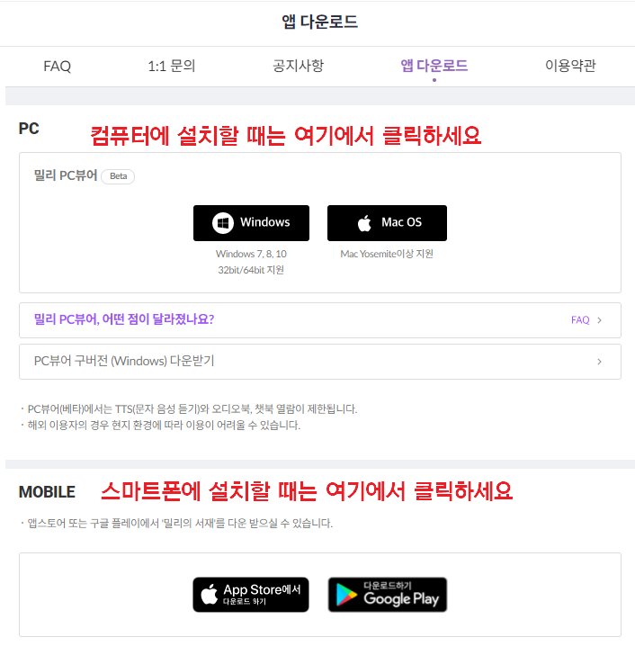 ๋ค์ด๋ก๋๋ฅผ ๋ฐ์ ๋๋ PC์ฉ๊ณผ ๋ชจ๋ฐ์ผ ์ฉ์ด ์์ผ๋ ๊ตฌ๋ถํ์ธ์