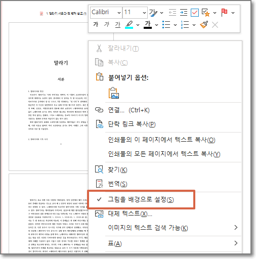 PDF์์ ๊ฐ์ ธ์จ ๊ทธ๋ฆผ์ "๊ทธ๋ฆผ์ ๋ฐฐ๊ฒฝ์ผ๋ก ์ค์ "ํ๋ฉด ๋๋ค.