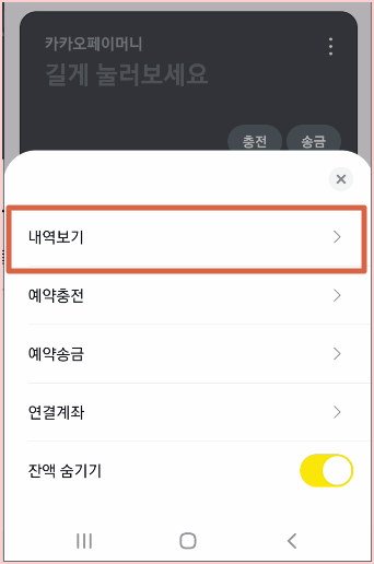 ๋ด์ญ๋ณด๊ธฐ, ์์ฝ์ถฉ์ , ์์ฝ์ก๊ธ, ์ฐ๊ฒฐ๊ณ์ข, ์์ก์จ๊ธฐ๊ธฐ ๋ฑ์ ๊ธฐ๋ฅ์ด ๋์ค๋๋ฐ ๋ด์ญ๋ณด๊ธฐ๋ฅผ ํด๋ฆญํฉ๋๋ค.