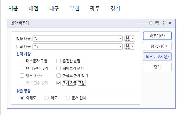 ์ฐพ์ ๋ด์ฉ์ <ํญ> ์ฆ ^t ์ด๊ณ ๋ฐ๊ฟ๋ด์ฉ์ <์ํฐ> ^n ์ผ๋ก ์ ๋ ฅํฉ๋๋ค. ๊ทธ๋ฆฌ๊ณ ๋ชจ๋ ๋ฐ๊พธ๊ธฐ๋ฅผ ํด๋ฆญํฉ๋๋ค.