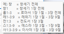 ๋ 1-3:9 = ๋ ์๊ธฐ 1์ฅ 1์ - 3์ฅ 9์