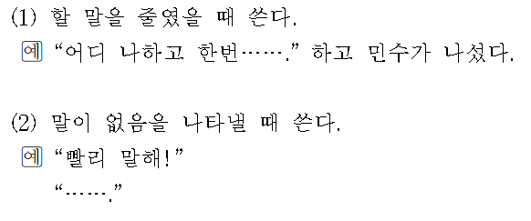 (2) ํน์ ํ ์ด๊ตฌ์ ๋ด์ฉ์ ๋ํ์ฌ ์์ฌ, ๋น์ ๊ฑฐ๋ฆผ ๋ฑ์ ํ์ํ ๋, ๋๋ ์ ์ ํ ๋ง์ ์ฐ๊ธฐ ์ด๋ ค์ธ ๋ ์๊ดํธ ์์ ์ด๋ค.
