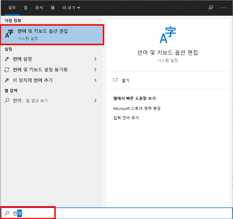 1. ์ผ๋จ ์์๋ฒํผ ์์ ๊ฒ์์ฐฝ์ "์ธ์ด"๋ผ๊ณ ๊ฒ์ํ๋ค.