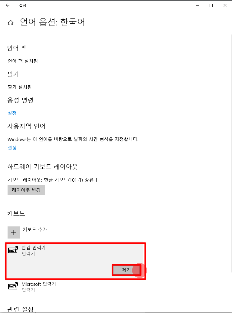 ํ๊ธ ์ ๋ ฅ๊ธฐ์ "ํ์ปด ์ ๋ ฅ๊ธฐ"์ "Microsoft ์ ๋ ฅ๊ธฐ" ์ค์ "ํ์ปด ์ ๋ ฅ๊ธฐ"๋ฅผ ์ ํํ์ฌ "์ ๊ฑฐ"ํ๋ค.