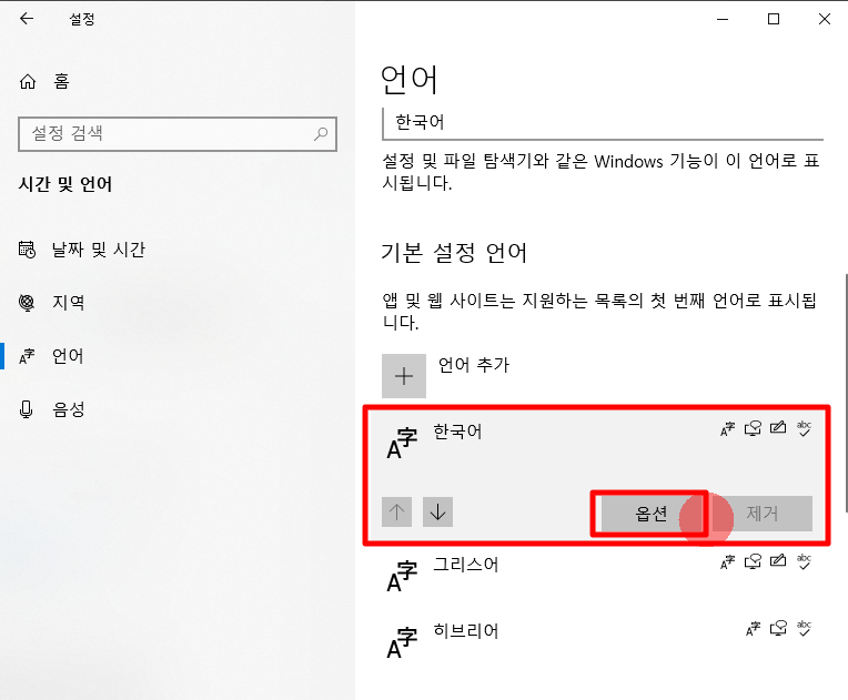 ๊ธฐ๋ณธ์ค์ ์ธ์ด -"ํ๊ตญ์ด"๋ฅผ ํด๋ฆญํ๋ค.