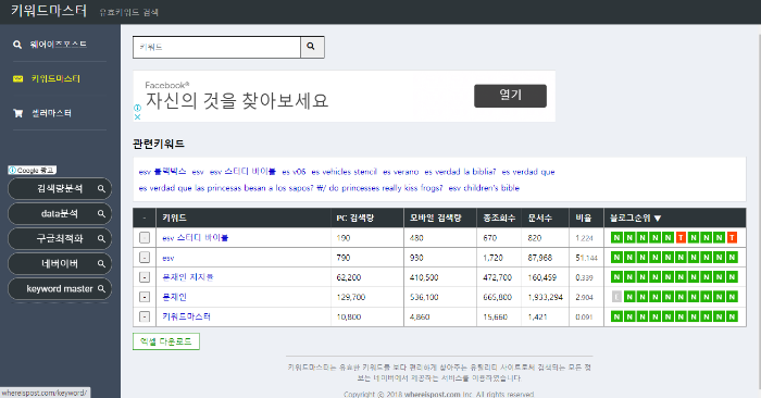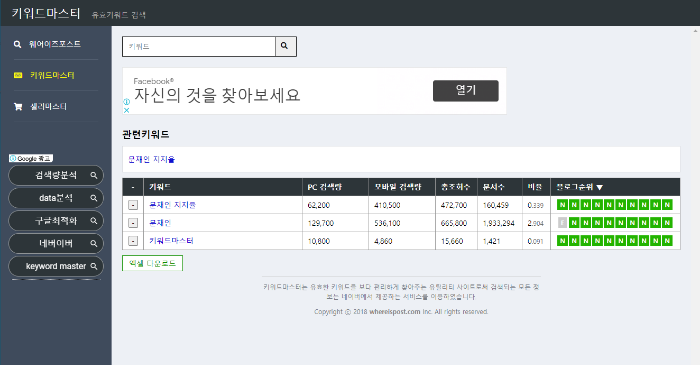 ํค์๋ ๋ง์คํฐ๋ ํค์๋๋ก ๊ฒ์ํ์ ๋ ๋ํ๋๋ ๊ฒ์๋ ๋ณด์ฌ์ค๋๋ค.